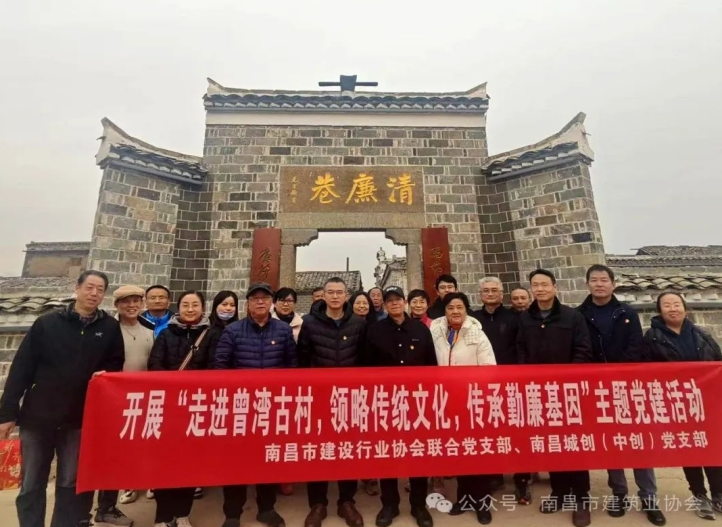 新年伊始,為持續(xù)深入學(xué)習(xí)貫徹黨的二十屆三中全會(huì)精神,教育引導(dǎo)全體黨員和職工強(qiáng)化紀(jì)律規(guī)矩意識(shí),上好黨風(fēng)廉政建設(shè)“第一課”,南昌市建設(shè)行業(yè)協(xié)會(huì)聯(lián)合黨支部與會(huì)員單位南昌城創(chuàng)(中創(chuàng))黨支部于1月8日組織南昌市建筑業(yè)協(xié)會(huì)、南昌市市政建設(shè)協(xié)會(huì)、南昌裝飾行業(yè)協(xié)會(huì)、南昌市建設(shè)工程造價(jià)管理協(xié)會(huì)及江西中創(chuàng)建設(shè)工程有限公司黨員和部分職工赴進(jìn)賢曾灣村開展“走進(jìn)曾灣古村,領(lǐng)略傳統(tǒng)文化,傳承勤廉基因”主題黨建活動(dòng)。